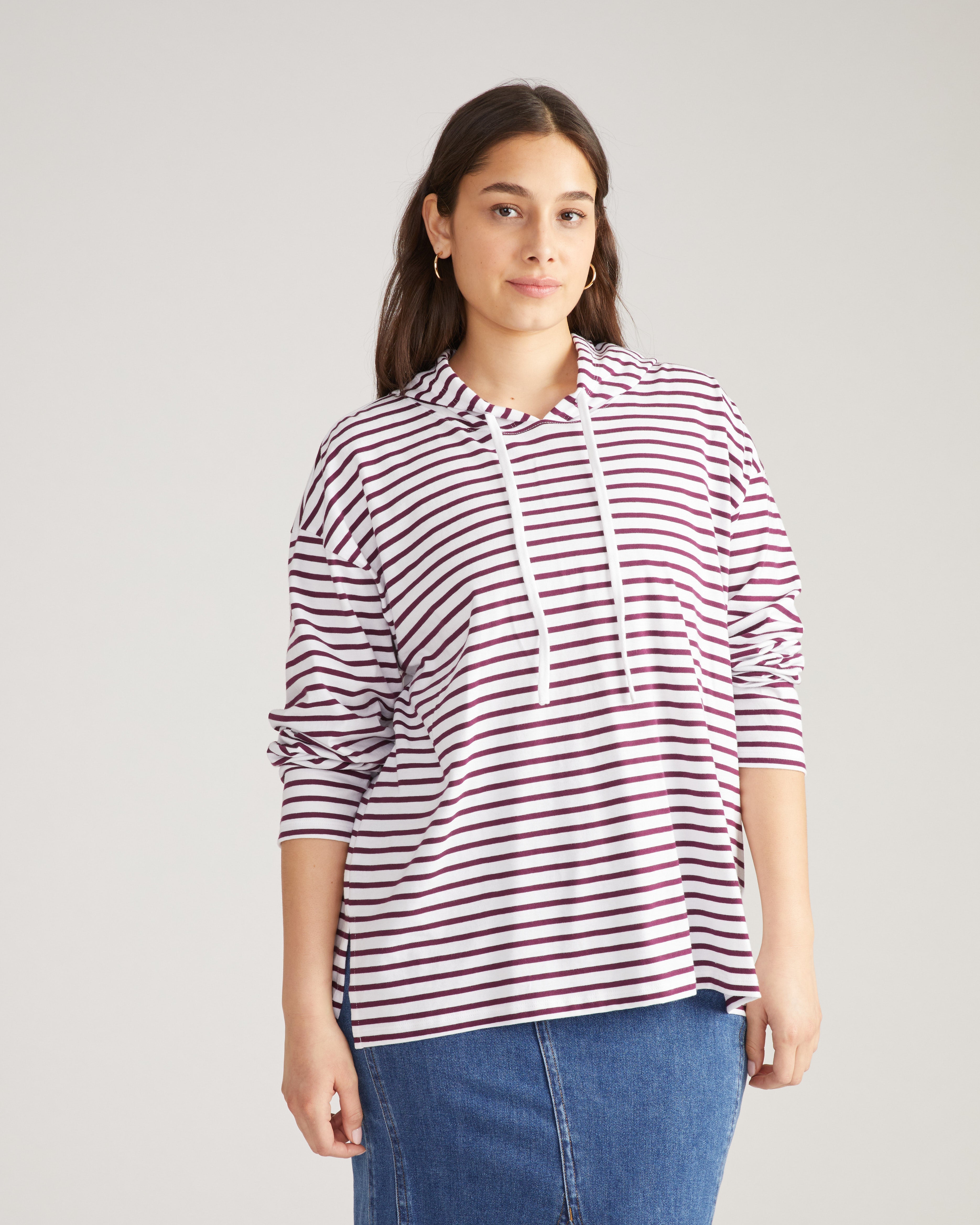 Designed with a beachy feel this season, our Baja Breton Stripe Hoodie lets you layer up and add to your favorite collection of Breton stripes. Made for those sunset walks when the temperature starts to dip and you need that perfect long-sleeve top. It’s cut with a bit more ease through the body and can be worn on its own or layered over a tee. A refined take on the always-essential Universal Standard hoodie.