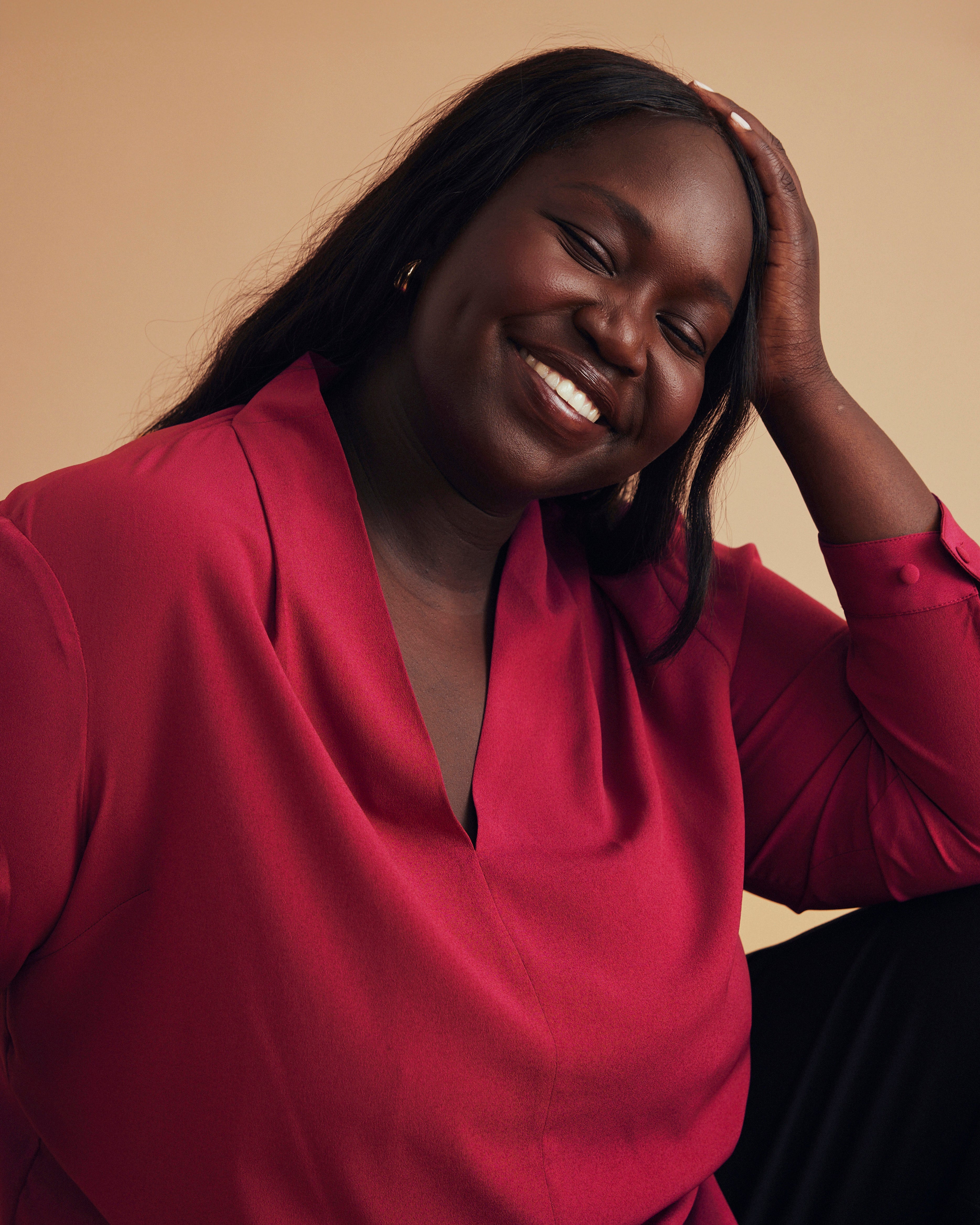 This fluid V-neck blouse will skim and float over your body. Elegant and tailored yet easy, it was constructed with comfortable stretch from an extra special, washable crepe de chine. We love the soft volume that flows down from the pleats at the neck and the elegant trim finishes.