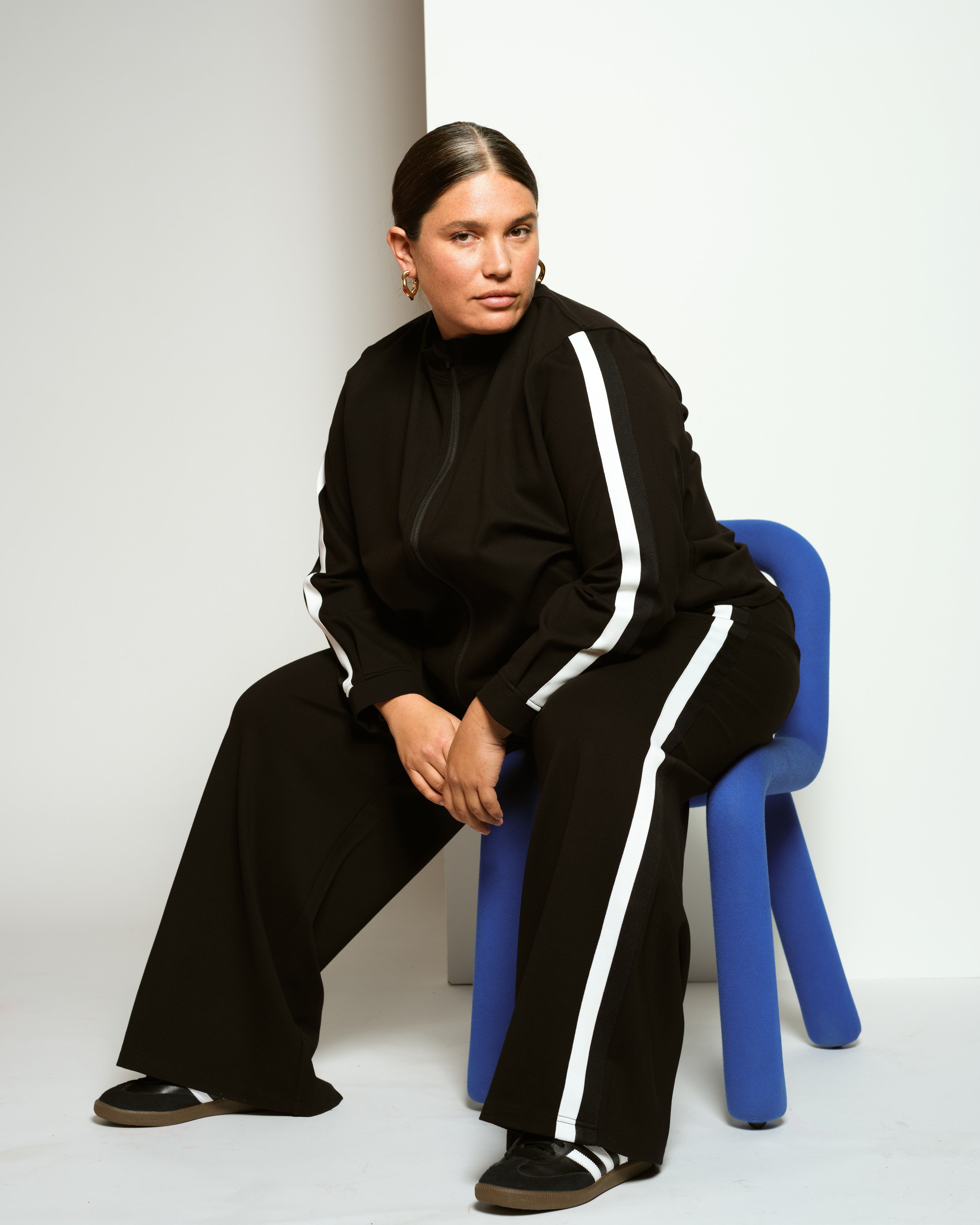 Our latest silhouette in Ponte Jackets, the Camden Ponte Bomber brings an athletic influence to classic Ponte Tailoring. Our zip front bomber is designed with an easy cut in the sleeve for a more comfortable fit on the upper arm; pleats in the back for a soft volume and a hemline cut to float smoothly over the hips. Front pockets are also finished with zips and sleeve cuffs with a metal snap.