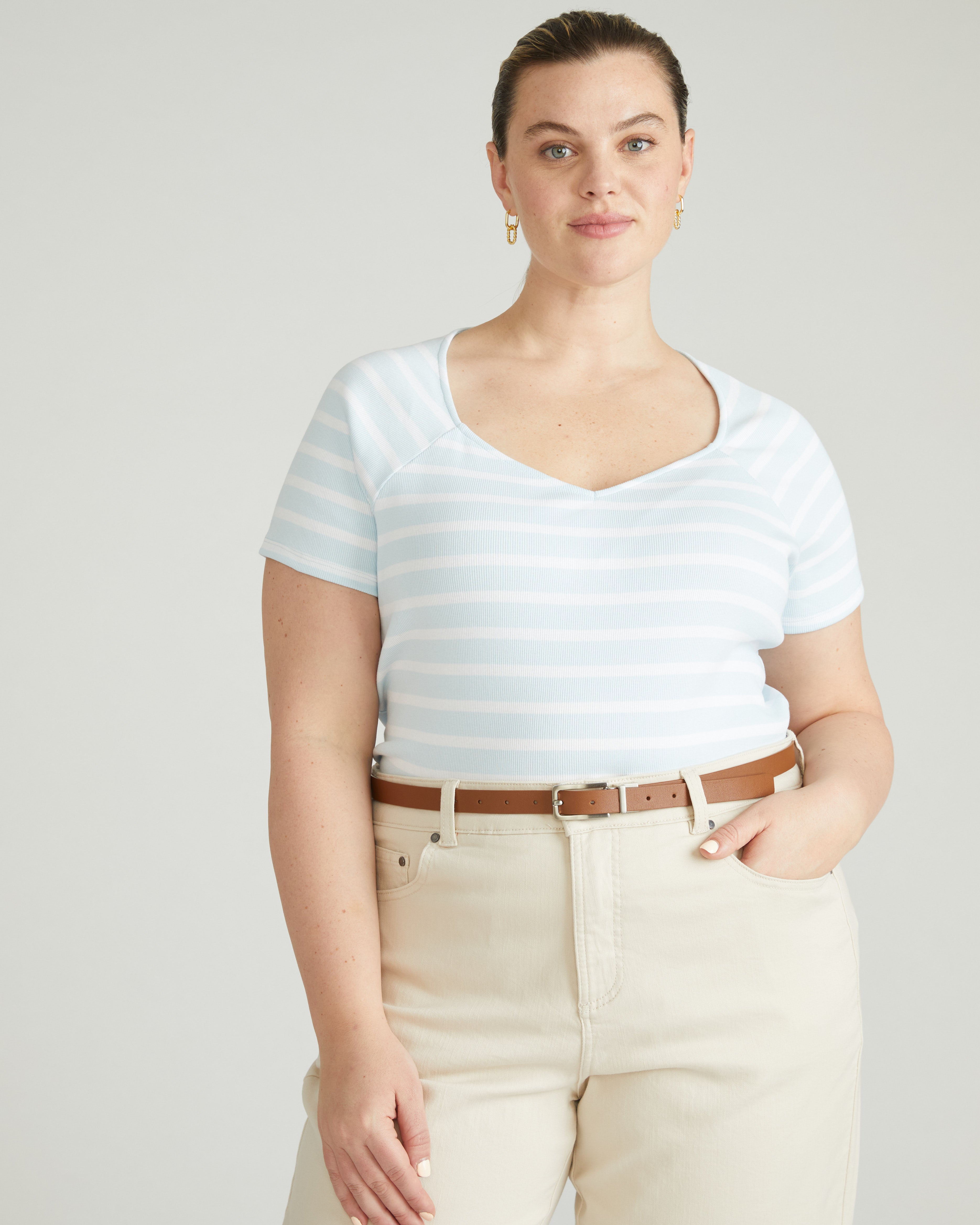 Our supersoft cotton rib gives a new take on the fitted tee. Cut with thoughtful details like a soft, sweetheart neckline and raglan sleeve, the Carey Top blends casual and cool, and pairs perfectly with denim. Tuck it in or wear it out—this natural cotton rib is great for summer, a lightweight fabric that keeps its sharp look all day long.