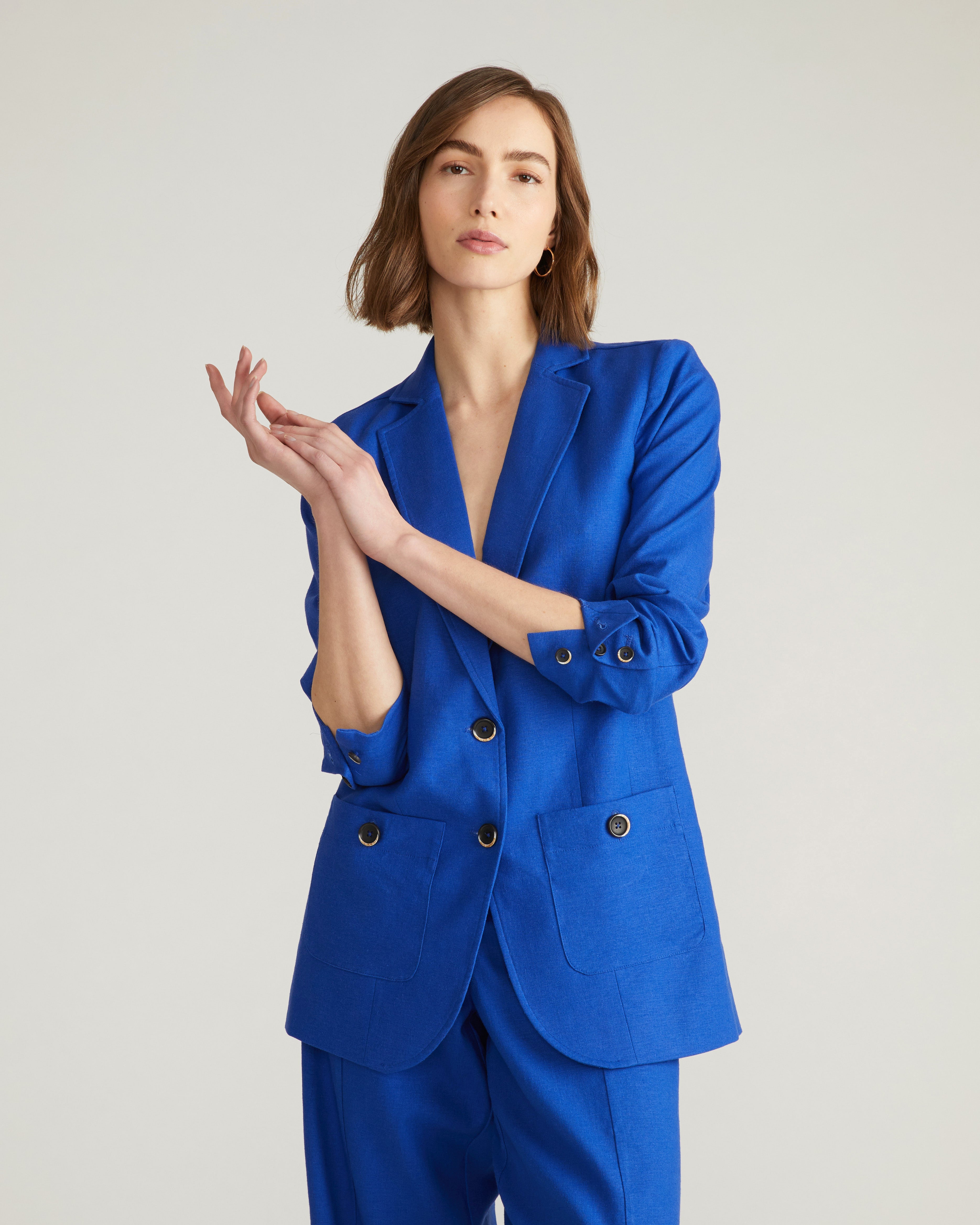 Finally, a linen blazer that’s structured and chic. It’s not that we don’t like something airy and relaxed, it’s that we love options! Still cool and breathable, this polished piece is made from a midweight linen with just the right amount of stretch. With clean lines and subtle shoulder pads, this jacket will take your jeans-and-a-tee outfit to the next level.