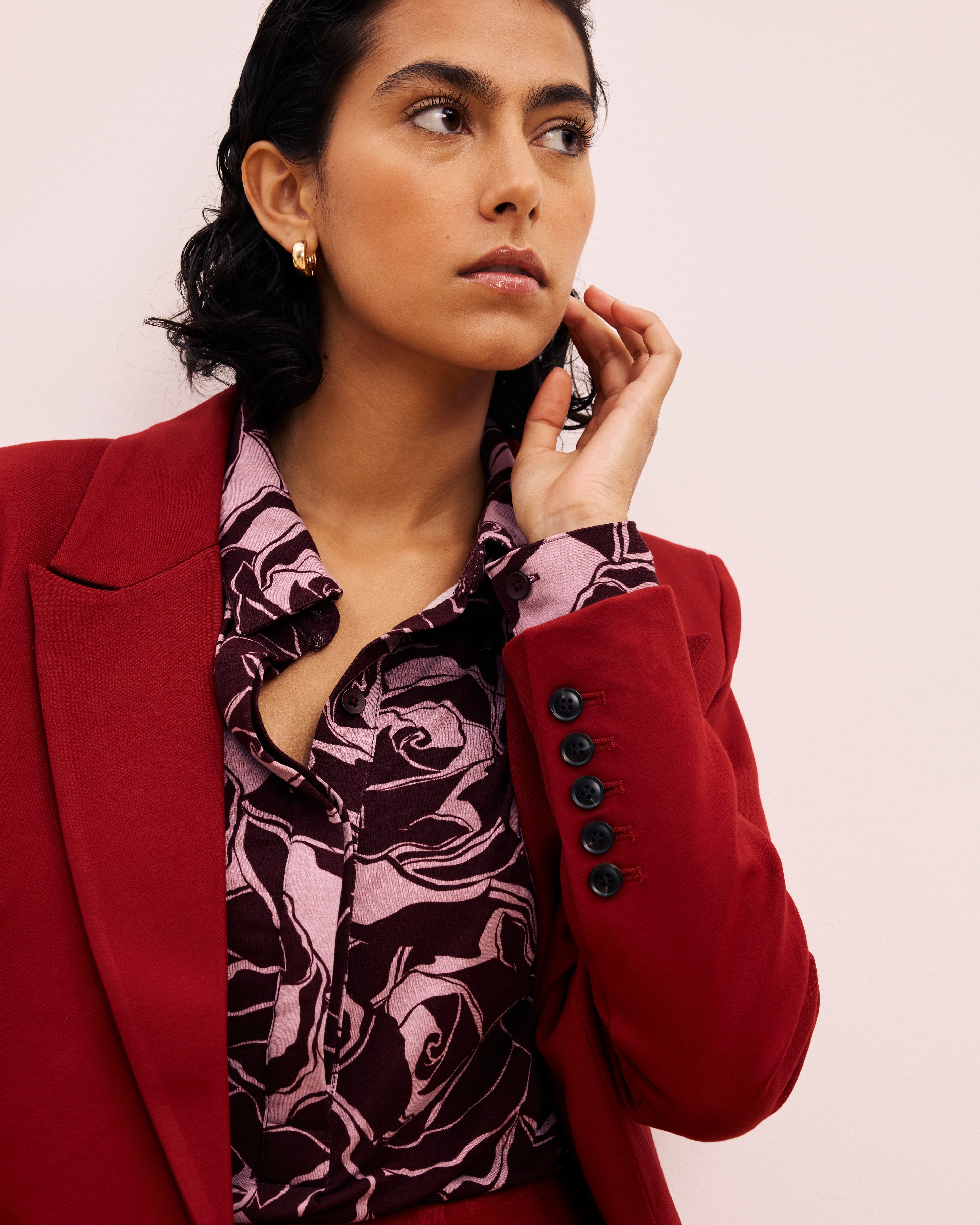 Elbe Popover Liquid Jersey Shirt Classic Fit - Rose Print in Black Cherry
