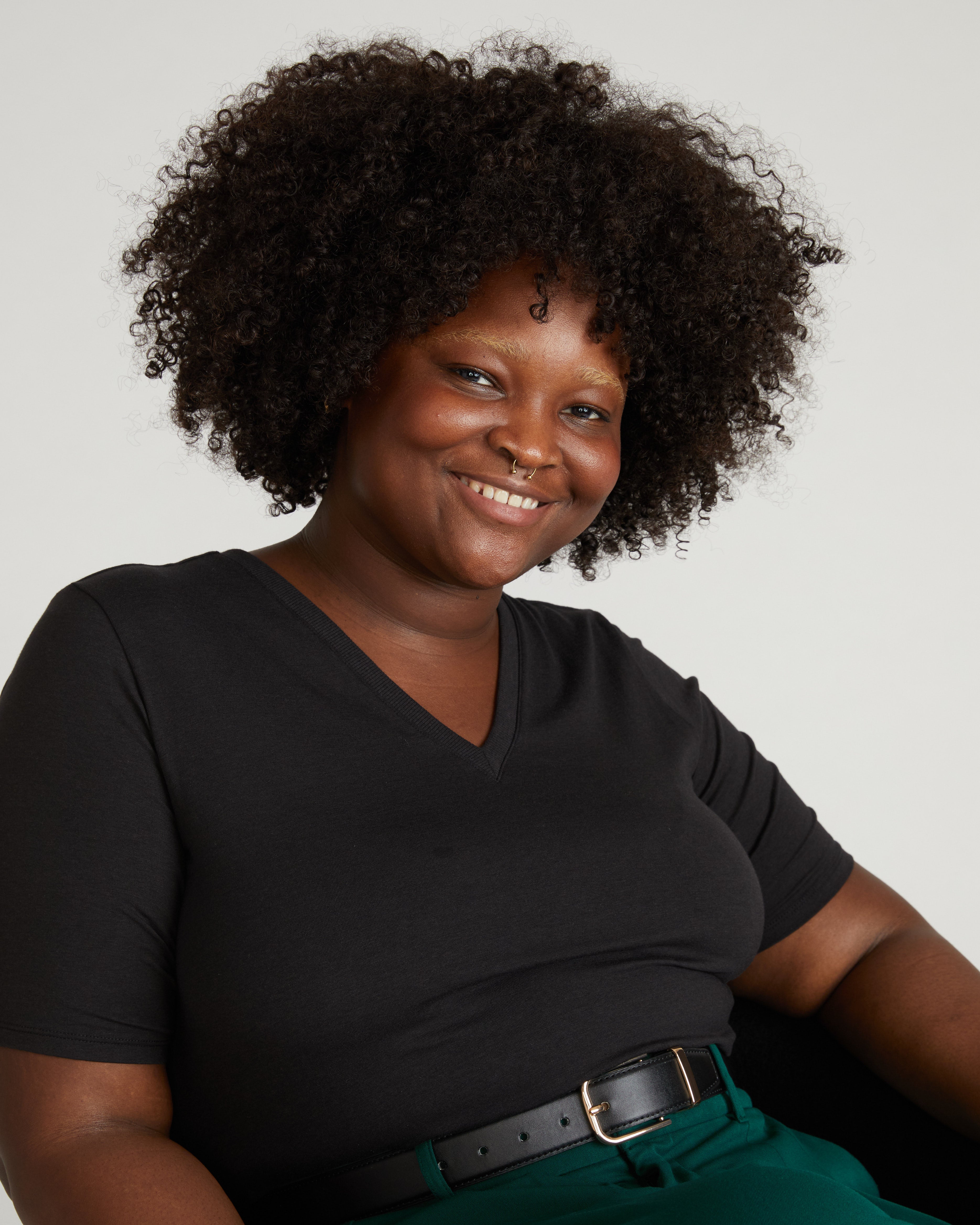 Maia Stovepipe Sleeve V Neck Tee - Black