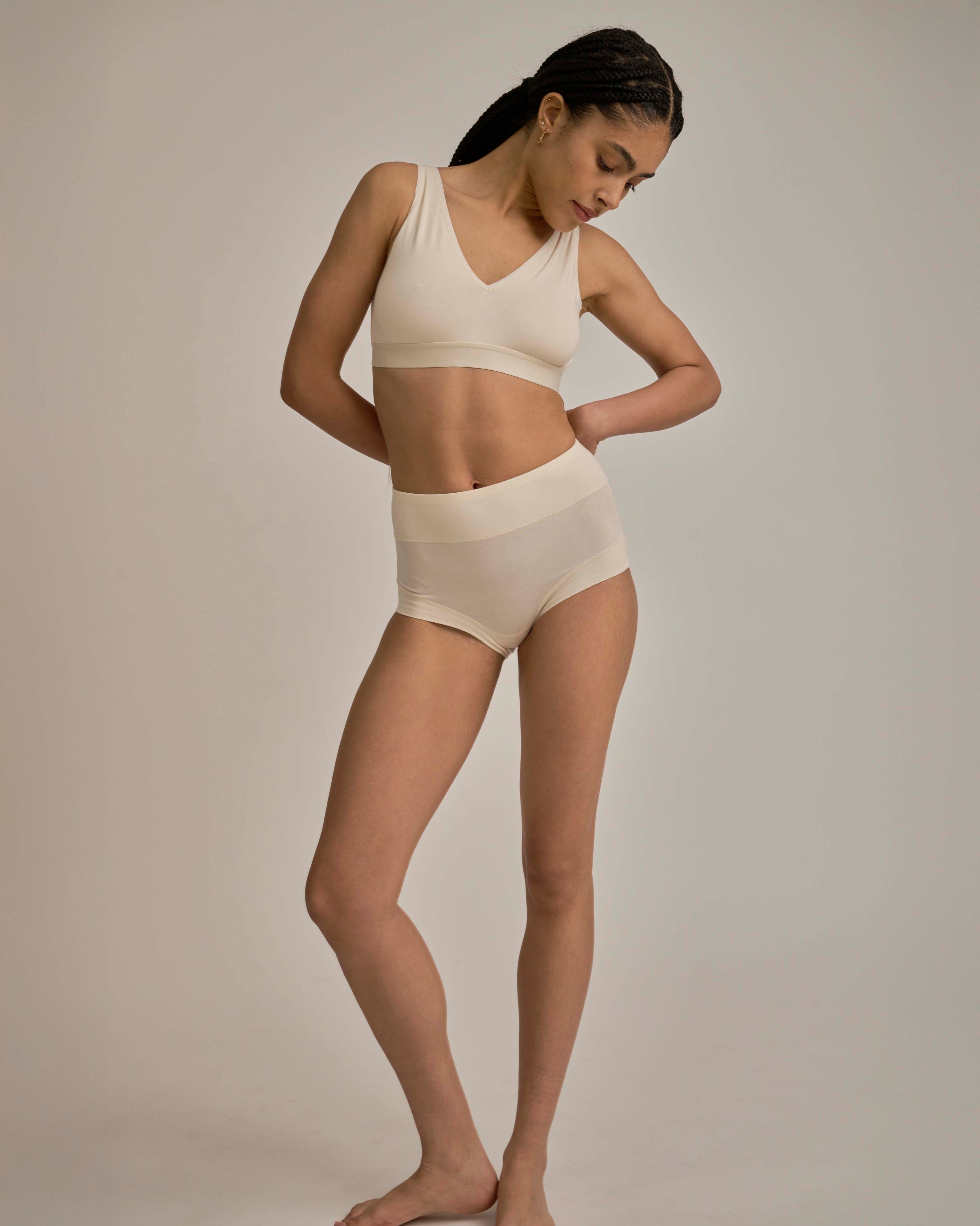 We’ve reimagined our best-selling high-rise brief with a new leg opening—no elastic, just a wide, double-layered band that lays flat and smooth against your skin. The result? No digging, no cutting in, no slipping out. This smart update offers even more comfort and front coverage where it matters most—gently keeping everything in place so you feel secure and supported all day long.