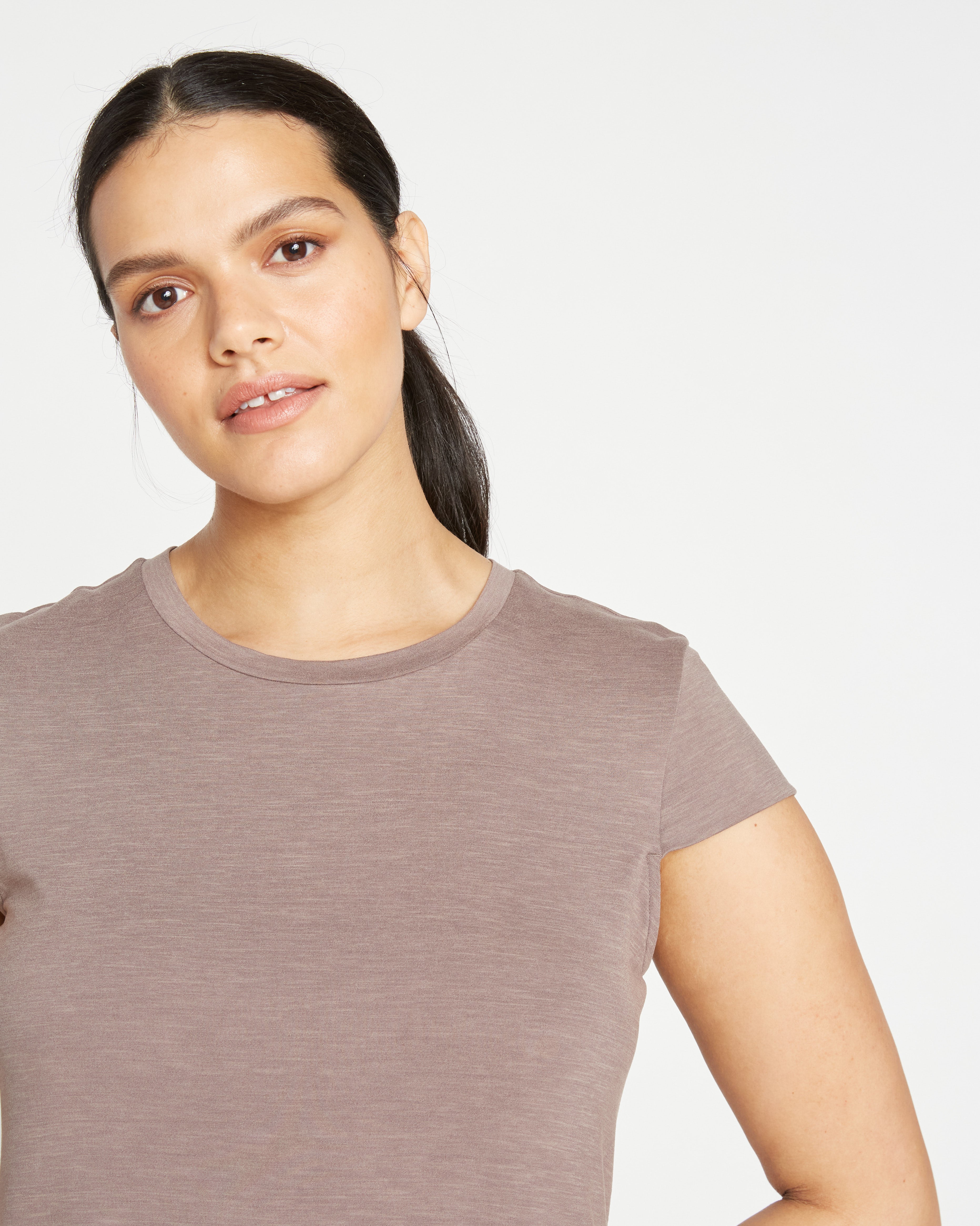 Your light-as-air elevated tee for every activity. Stay cool all day long in this essential style. It’s made from a new supremely soft, lightweight, and moisture-wicking fabric that’s perfect for summer. Key details include the crew neck, cap sleeves, and hidden stretch. We made this for movement but you can also wear it to hang out and relax. Wear it all day, any way you want. We named it the All Day Tee for that reason.