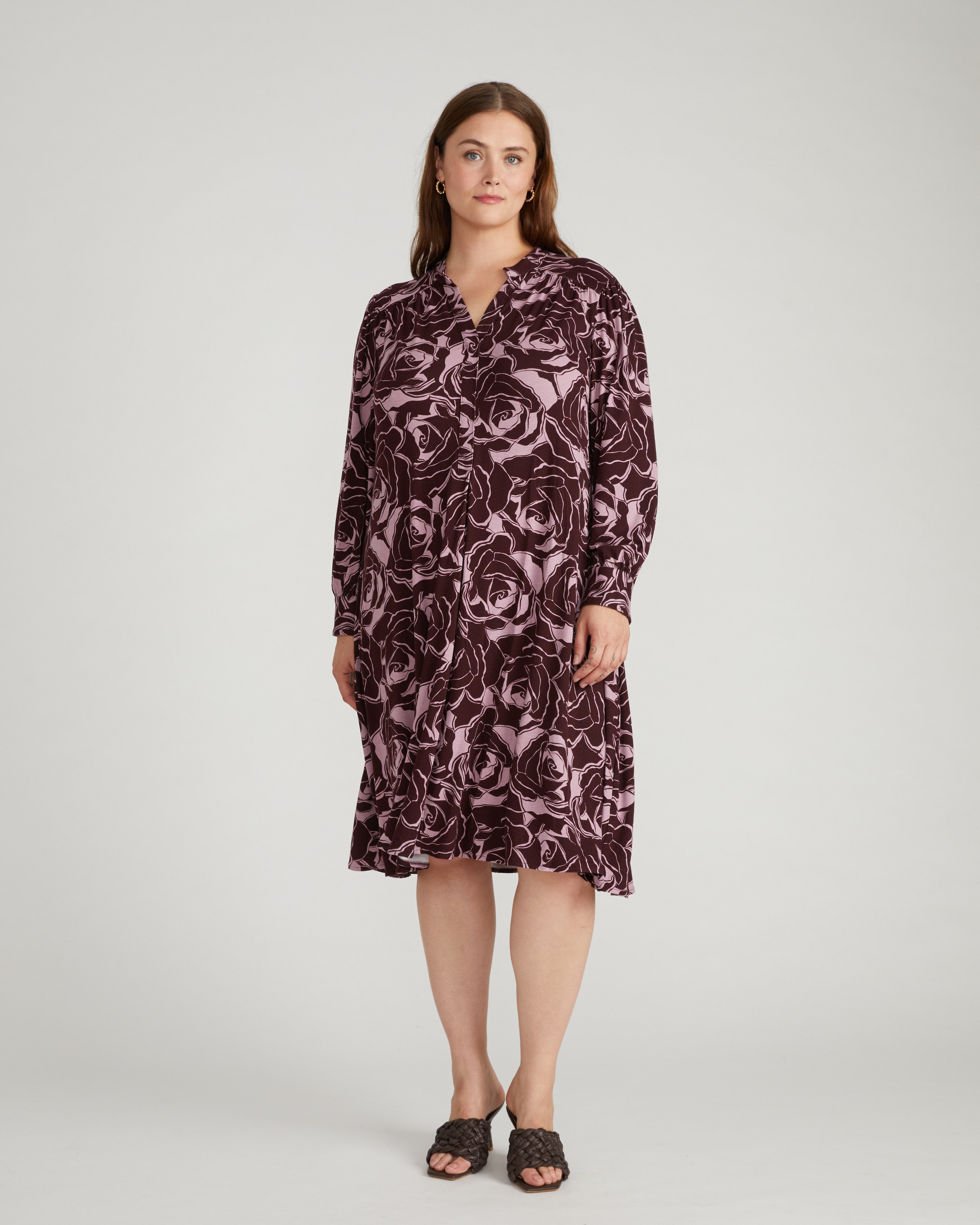 Gramercy Liquid Jersey Dress - Rose Print in Black Cherry
