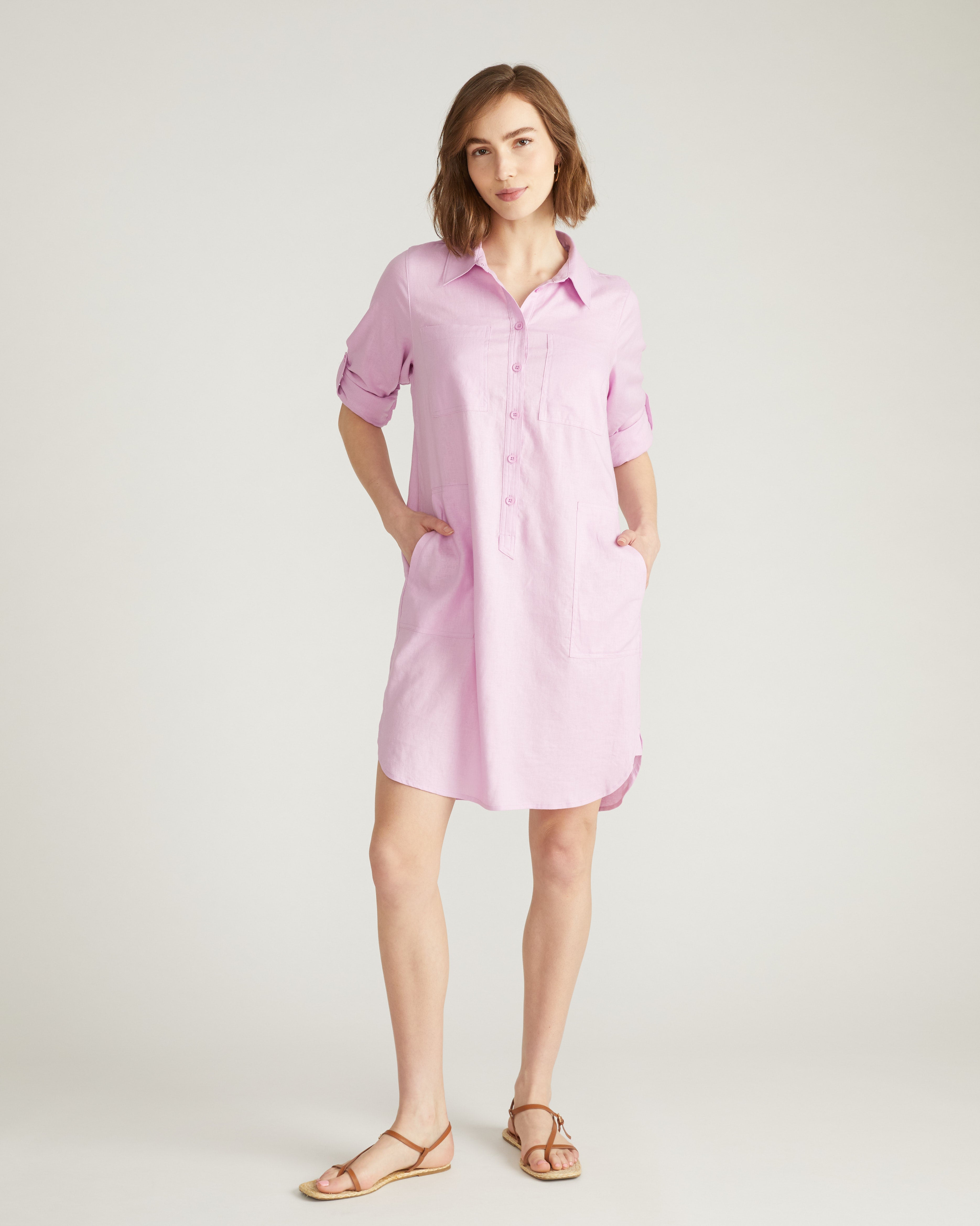 Based on our Rubicon Shirtdress, our Pocket Linen version offers a more playful take for spring. Cut to skim the body without being tight, this style is petite-friendly thanks to its shorter length and classic fit at the shoulders and bust. The sleeve is finished with an internal tab to keep rolled-up sleeves in place.