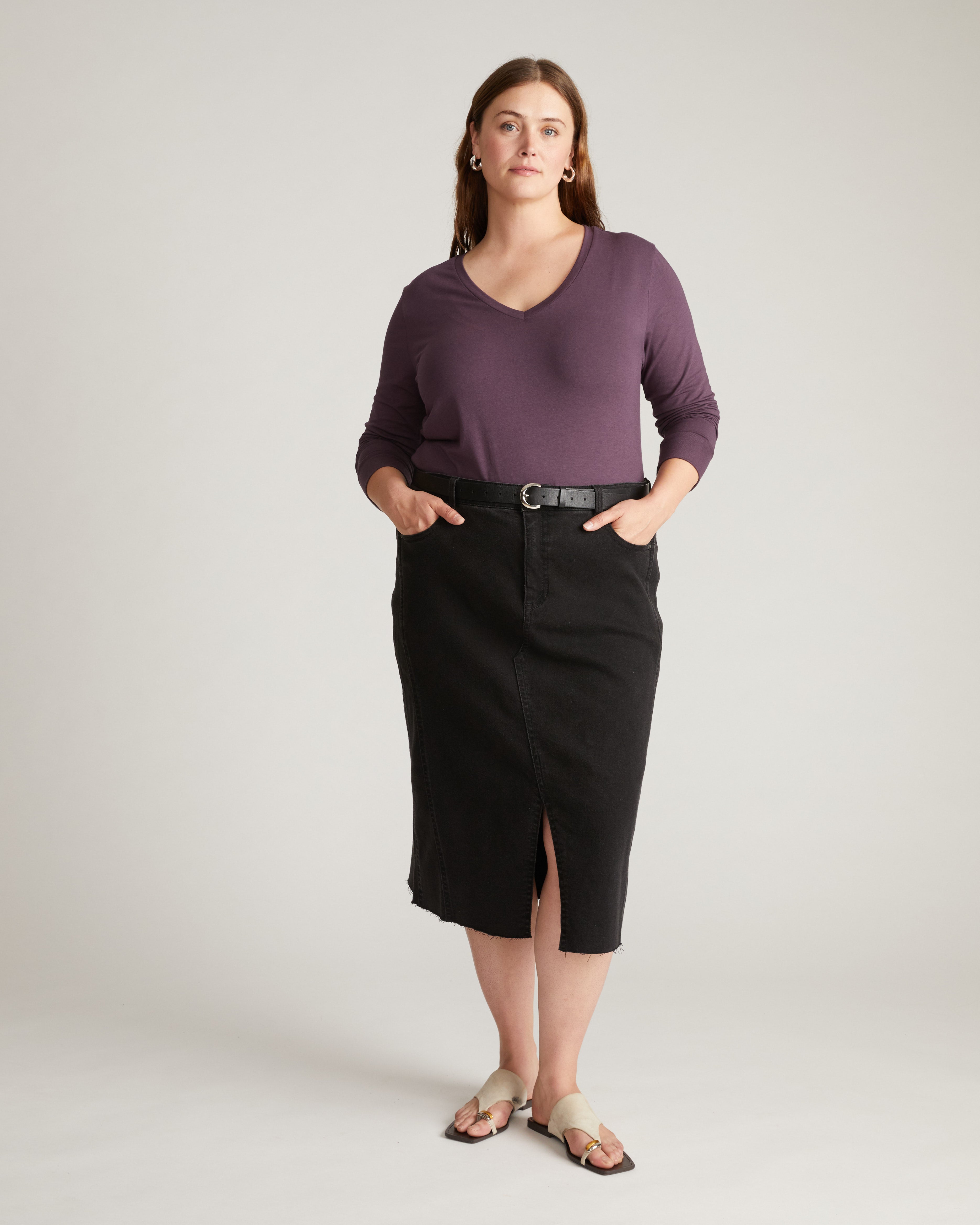 Made from an ultra soft Peruvian cotton blend that's soft, durable, and breathable, this long sleeve tee is a must-have basic (that's anything but). Designed for you, we included a perfect down-to-there v-neck, curved hem, and sleeves that provide comfortable coverage.