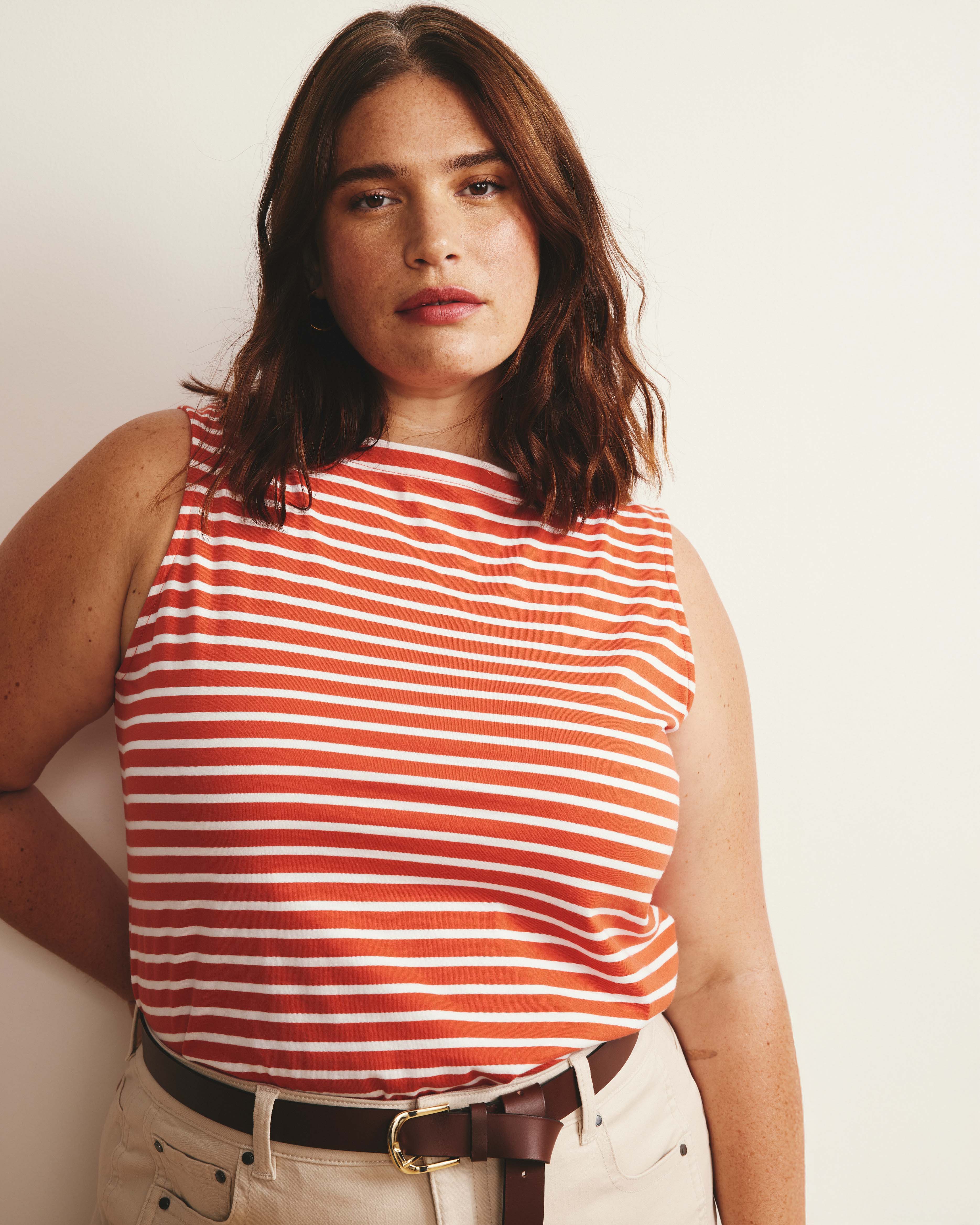 The perfect summer tank. An elegant boat neck will frame your face and the easy fit will have you reaching for it again and again. It’s made from a yarn-dyed, compact-knit jersey that was developed by US. Soft yet substantial, it features classic Breton stripes throughout.