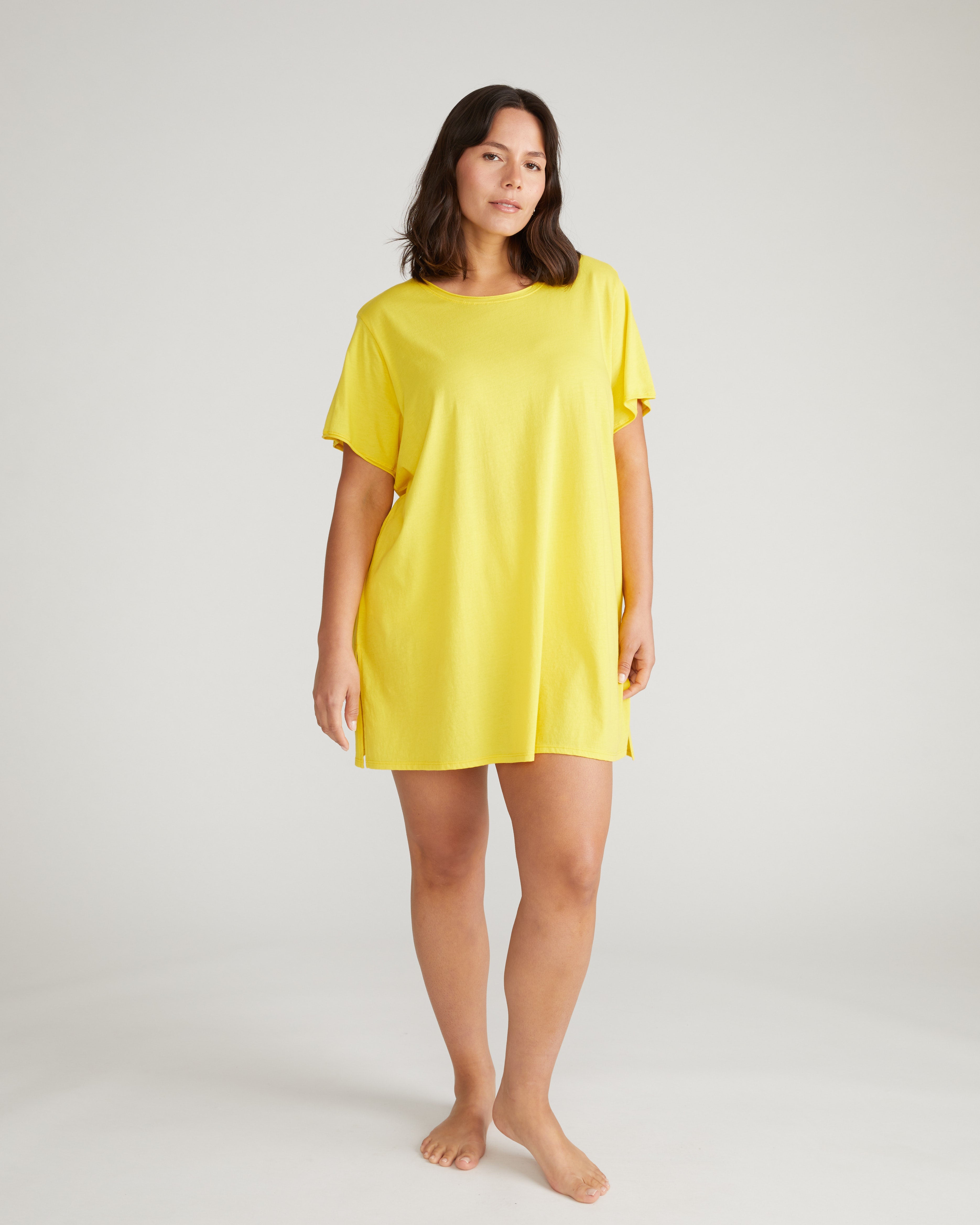 Your go-to lounge tee has arrived—soft, airy, and effortlessly relaxed. Crafted from 100% organic cotton, this tee is your new everyday essential. Designed with a long silhouette, it features side-seam slits and raw-edge trim for a touch of undone charm. Perfect for lounging or layering, this tee is thoughtfully crafted for all-day comfort.