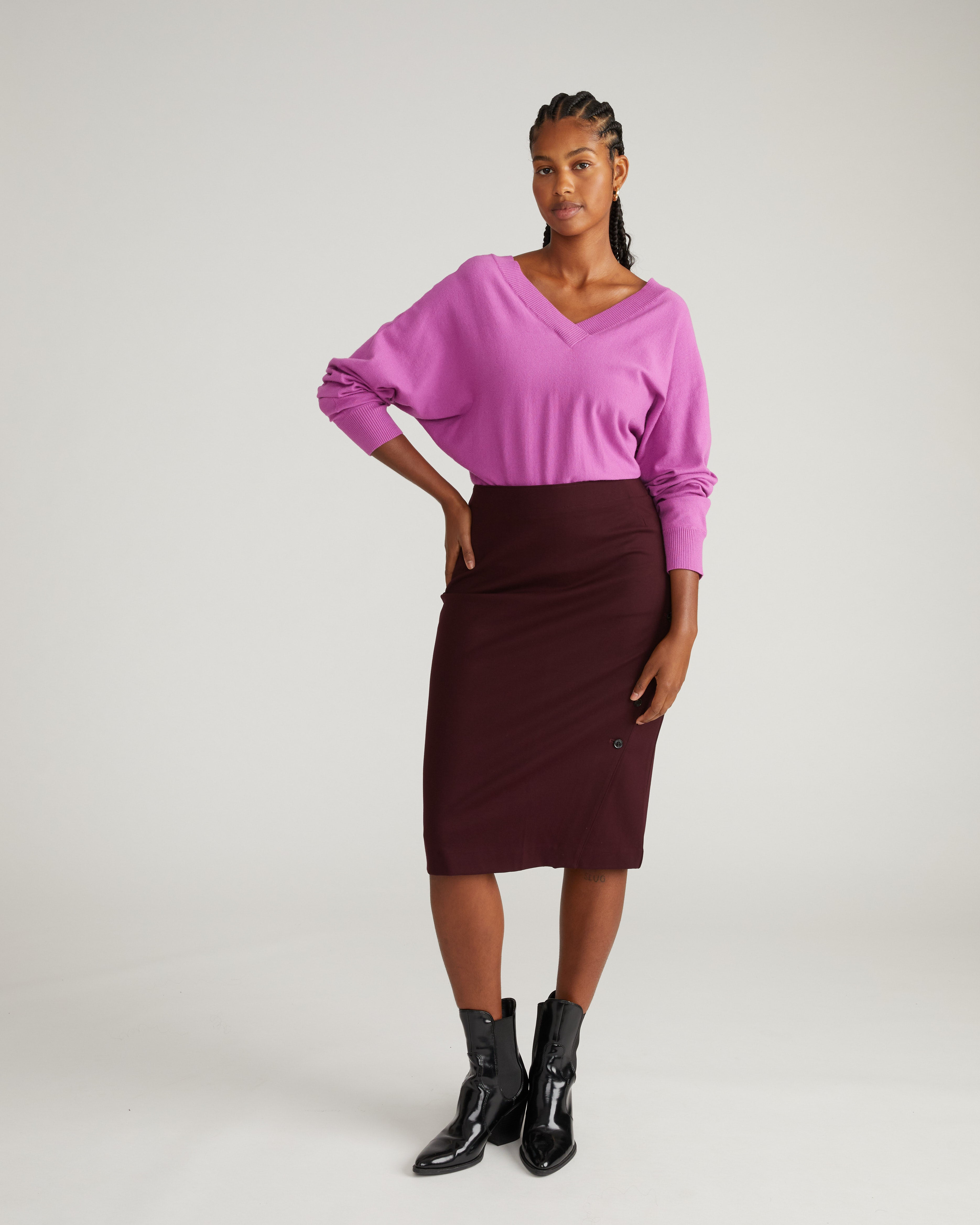 A great lightweight sweater should be as easy to wear as a tee, but elevate your look like a shirt or blouse. That’s exactly what the Savvy Fine Knit Sweater Blouse does for any outfit. Made from our fine Savvy Yarn, this cool-to-the-touch knit is the perfect single-layer solution for an office-friendly top. Designed with a double V-neck and dolman-style sleeves, it offers a sense of quiet luxury with a soft, generous drape—without feeling oversized or overwhelming. Pair it with a ponte pant for an easy, tailored combo, or with jeans for a more relaxed look.