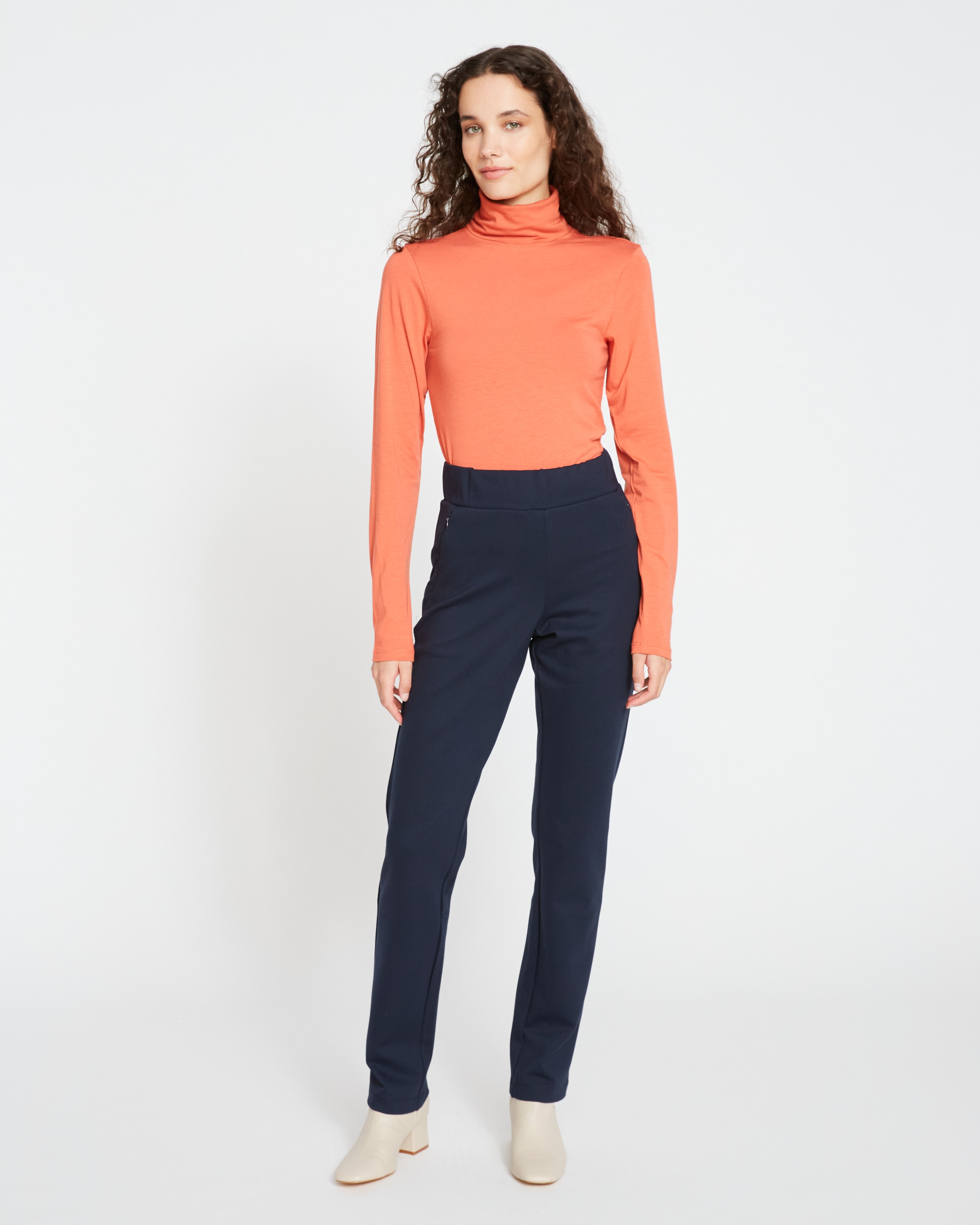 A sleek pant made from our soft-yet-structured signature ponte fabric is always a smart choice. Equal parts luxurious and comfortable, the Smart Signature Ponte Pants are tailored to look like polished pants, but made to feel like loungey leggings. Fitted at the waist and hip, with an easier leg, and complete with invisible zip pockets that will lay flat on the body, these pull-on ponte pants will work for work or play. Fans of the best-selling Moro Ponte Pants will probably want to add this style to their collection as well. No, there’s no such thing as too much ponte.