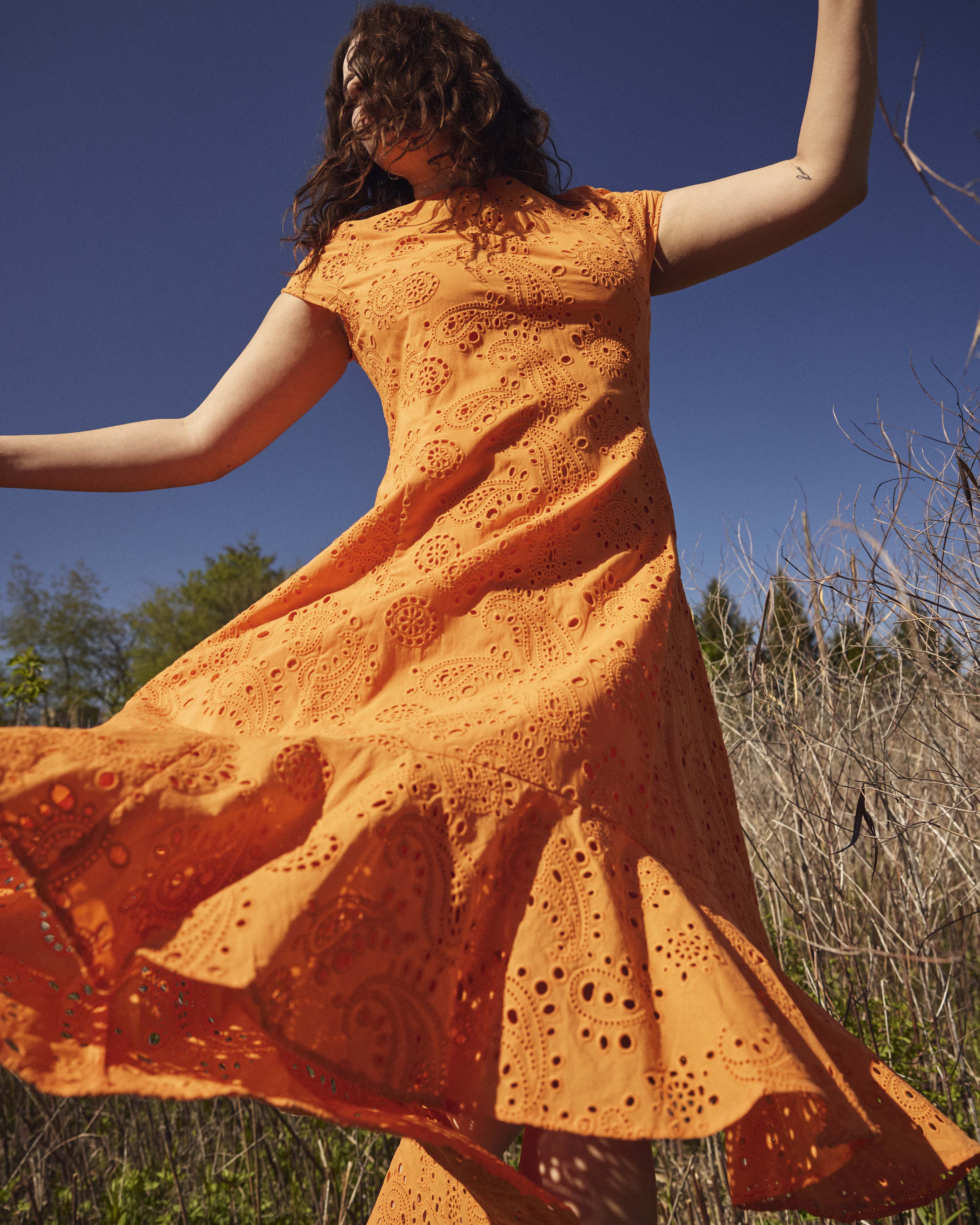 Sunset Cotton Eyelet Flounce Dress - Arancia