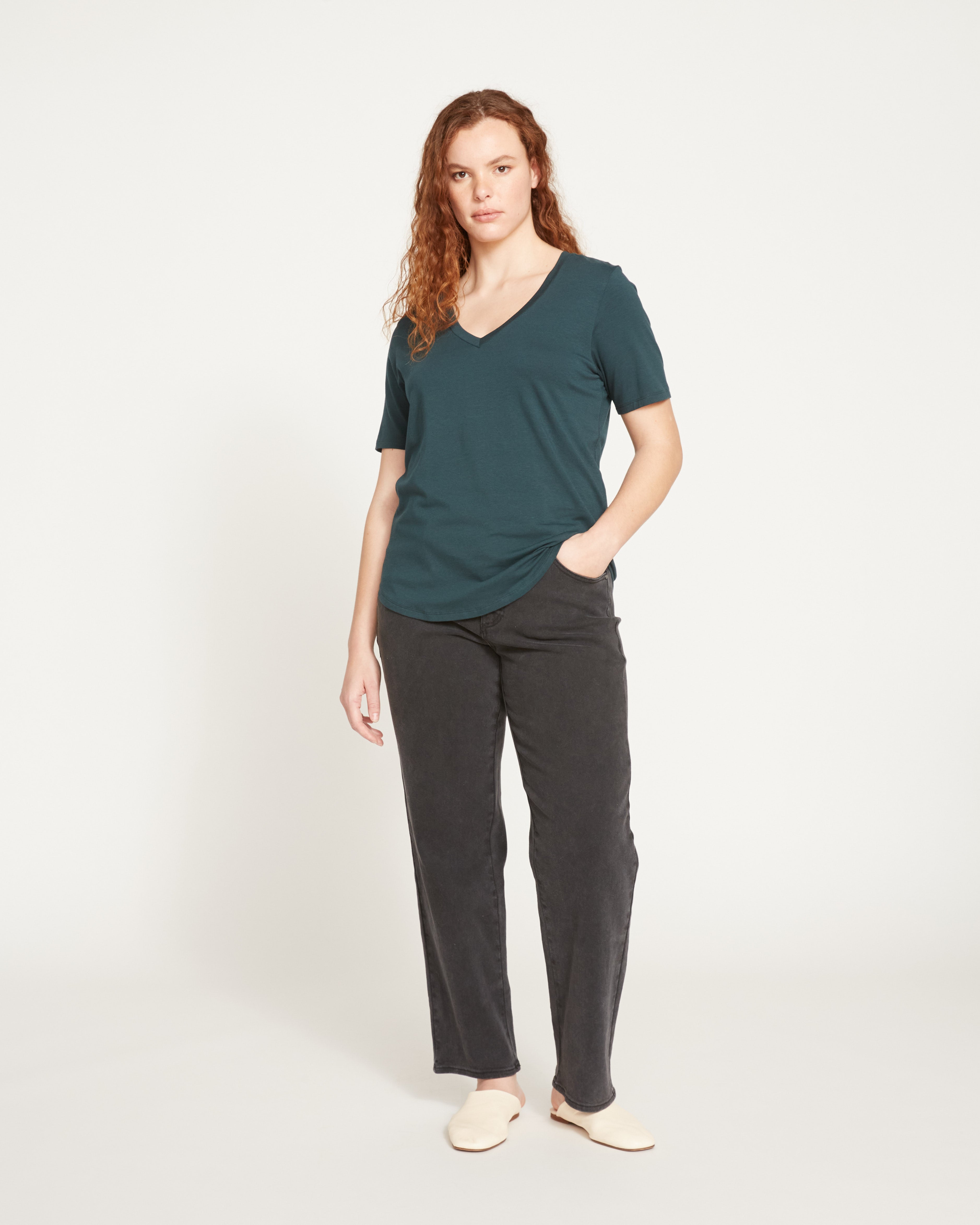 Our signature Tee Rex in a v-neck version. Carefully crafted for an impeccable fit, the V Rex is made from premium Peruvian cotton that only gets softer with every wash. A stovepipe sleeve that eliminates excess fabric, a strategically curved hem, and length that's not too long and not too short, make this tee truly one of a kind.